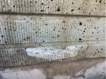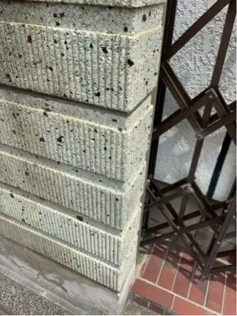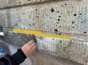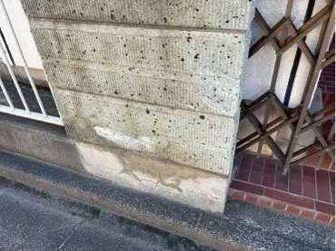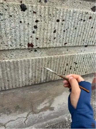 車で擦ったため、凹凸模様がそぎ取られ下地が見えている状態でした。