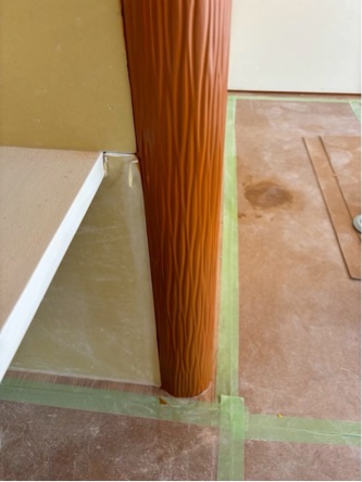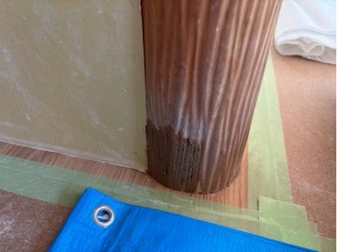 凹凸模様が綺麗に入っている床柱なのでその模様に合わせてパテ成形をしていきました。経年劣化で全体がくすみ色ムラもあるため全体塗装で仕上げていきます。